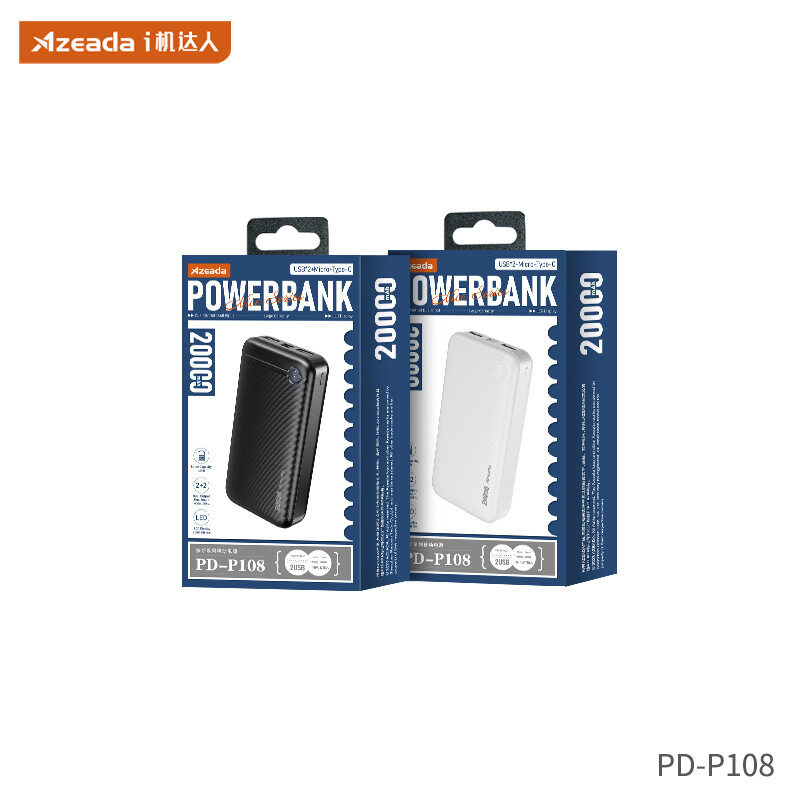 Kapacitet: 20,000mAh • Input: Micro-USB + USB-C (5V⎓2A) • Output: 2× USB-A (5V⎓2A secila)
